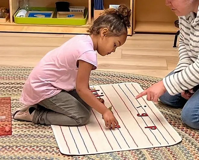 Santa Rosa Montessori![Santa Rosa Montessori Photo - Sounding it out and building words! This 3.5-year-old is making words with material designed to support early writing skills. Montessori makes early literacy fun and hands-on. Santa Rosa Montessori Photo - Sounding it out and building words! This 3.5-year-old is making words with material designed to support early writing skills. Montessori makes early literacy fun and hands-on.]()